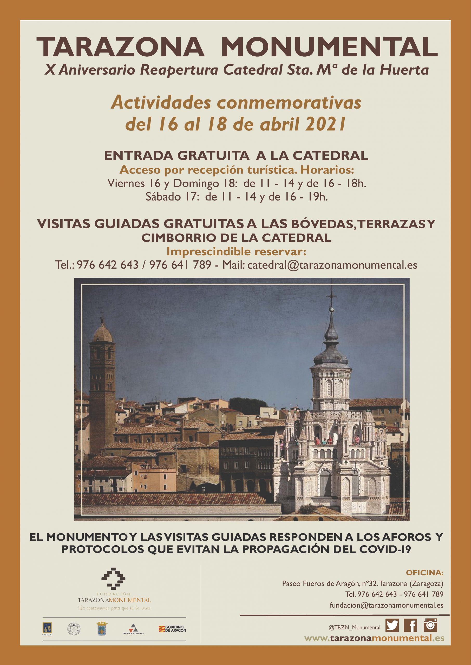 Por ello hemos organizado unas jornadas de puerta abiertas y pases guiados gratuitos al cimborrio los días 16, 17 y 18 de abril atendiendo a un riguroso protocolo anti covid y de control de aforos, y sólo para los residentes en Tarazona.