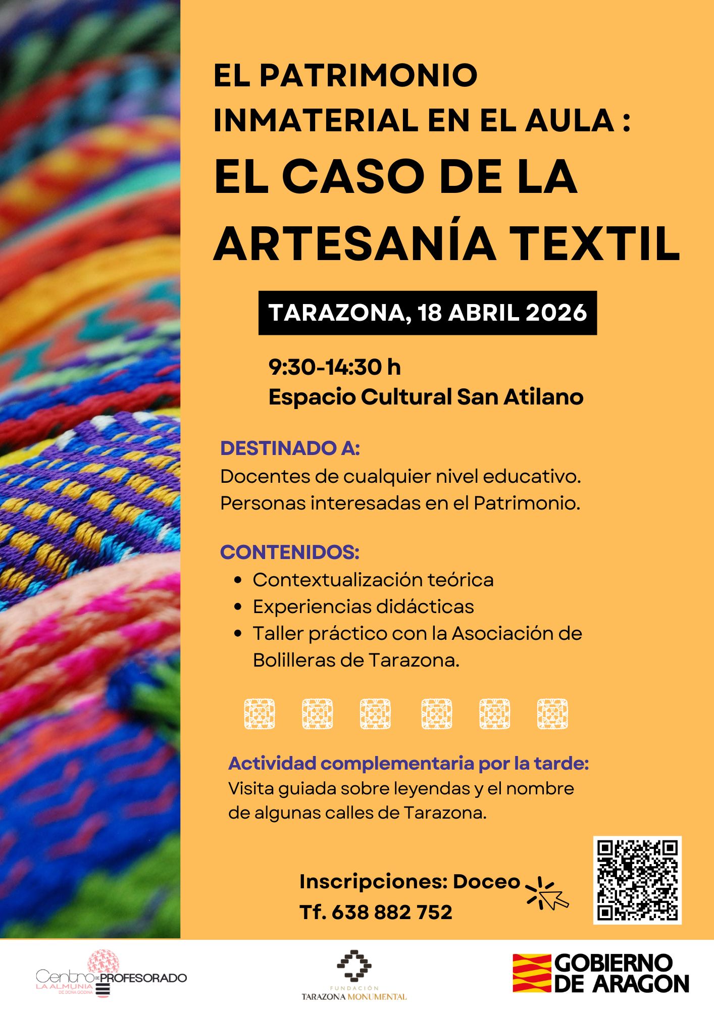- “Haciendo encajes de bolillos en las aulas. Creación de un mural colectivo sobre los valores del encaje de bolillos”. Proyecto de la Fundación Tarazona Monumental en colaboración con la Asociación de Bolilleras de Tarazona. IES Tubalcaín, Colegios Sagrada Familia y Ntra. Sra. del Pilar de Tarazona.