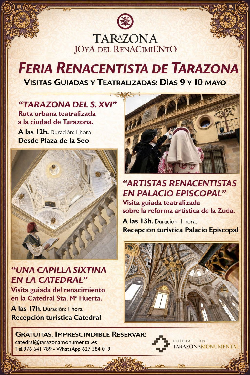 Para asistir es necesario reservar con antelación, ya que las plazas son limitadas. En los teléfonos: 976 641 789 / 976 642 643. WhatsApp: 627 384 019. Correo electrónico: catedral@tarazonamonumental.es